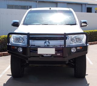 2013 Holden Colorado Deluxe black steel bullbar with fog lights....these bars look supurb, call for a quote today....!